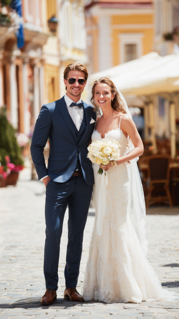 The ceremony took place on a sun-drenched terrace overlooking the cliffs. Elena walked down the aisle barefoot, carrying a bouquet of wildflowers Thomas had picked himself that morning. The couple wrote their own vows, shared tears, and laughed under the golden light of sunset.